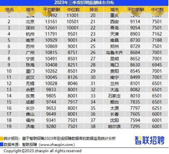 9月27日,智联招聘继续发布2023年第三季度《中国企业招聘薪酬报告》,展示国内38个核心城市企业的招聘薪酬水平。